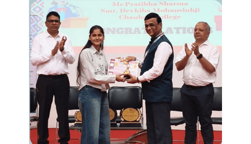 Ms. Pratibha Sharma of T.Y.B.Sc. (CS) secured 2nd Prize in Mic Master (Elocution) at Dyna Fest 3.0, organized by ROFEL College, Vapi.